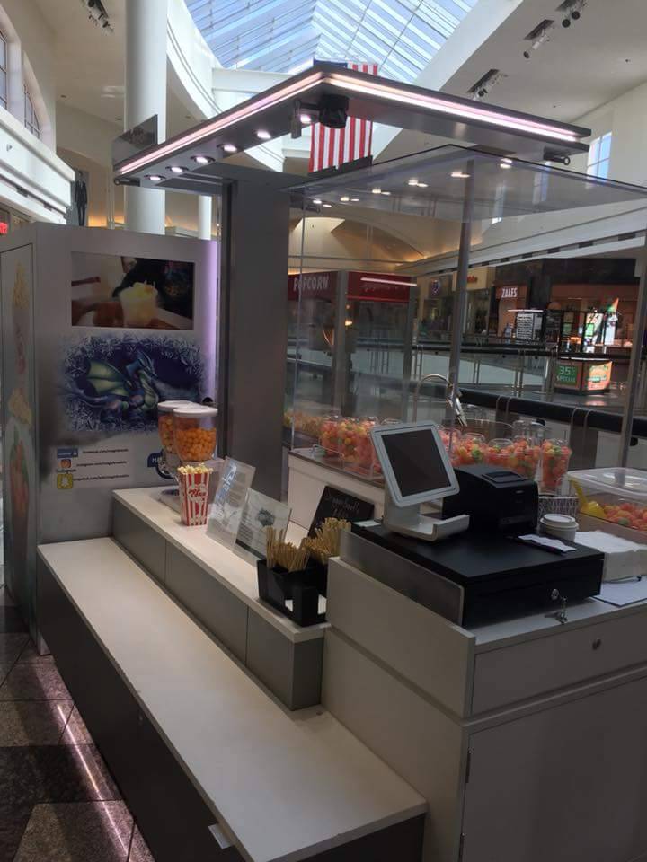 Easy to find on the second floor of the Galleria Mall, outside Penny’s. Pretty average prices...$6-$7 for cheese balls, fruit puffs and popcorn! Great for a snack that will entertain children and the young at hart.
