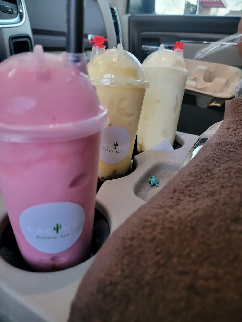 This was mine and my boyfriend first time coming to this boba tea place. I have to say this place was absolutely wonderful. I highly recommended this place. Thank you cactus bubble tea!! I got the mango boba with boba mango jelly and my boyfriend got the strawberry watermelon boba.