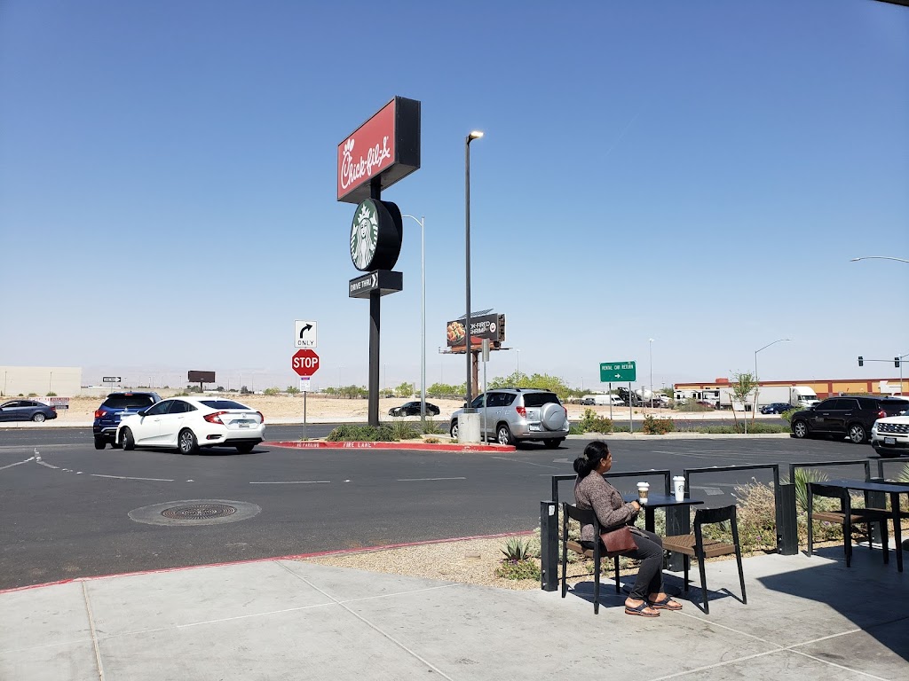 Nice standalone Starbucks location with a drive-thru. You can either drive-thru and get your drinks if you don't want to get out of your car, or you can enjoy the nice cool air conditioning inside. It's quite spacious and lots of windows, very bright atmosphere. The staff is friendly and they have pretty much everything you need in a standard starbucks. This is a great place to get cool drink on a hot Vegas day! This place is also right beside the heat village, and a short distance to the outlet stores.