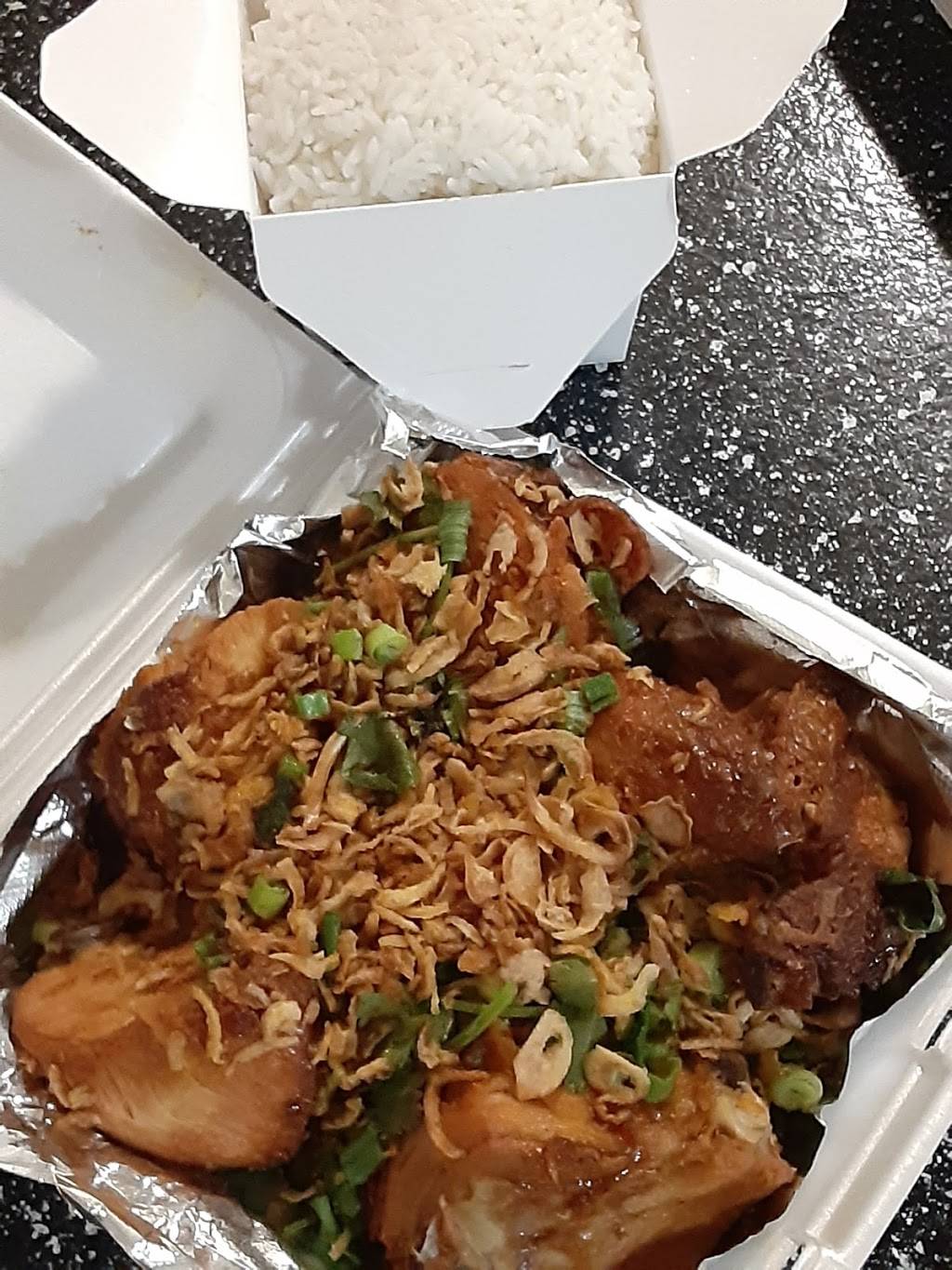 The food is good. I got the Ginger Pork and the meat was done just right, tender and juicy. Fresh vegetables and ginger. Just a tad too hot, but I overheard another client talking and ordered 2 numbers lower than my usual 6. It has a few tables with 2 seats, but no restroom.