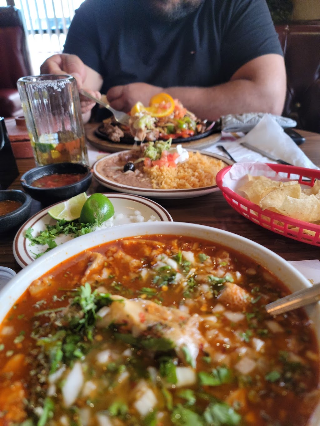 My husband and I shared an order of nachos. Very good! We visited during dinner time on a Friday night. It was quite busy. I actually took that as a good sign that lots of people liked it. The staff were all very kind. We say outside on the patio. I loved it. As expected with the crowds - food was slow to come. They kept up with our drinks great. Could have had more chips and salsa while waiting. We were with my parents and sister for dinner. My dad decided to give this place one more try. He and my mom had eaten there a few weeks ago, and had a weird experience. My dad ordered a meal, decided he was still hungry and ordered a second. Again decided he was still hungry and ordered a third. Instead of getting the third meal the cook came out to tell him he didn't need that much food, and wouldn't give him anymore.😂 Honestly, I thought the food and service were great. The place is clean with a good atmosphere. They can hold down the fort even while busy. We'll go there again!