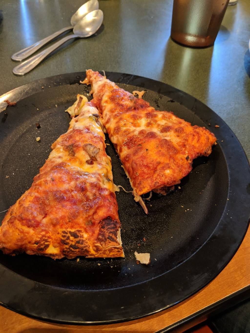 Pizza okay, they were already putting salad bar away 1hr before closing. Bathroom dirty.