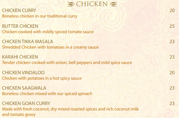 The butter chicken was very tasty, but not very much chicken - mostly sauce.