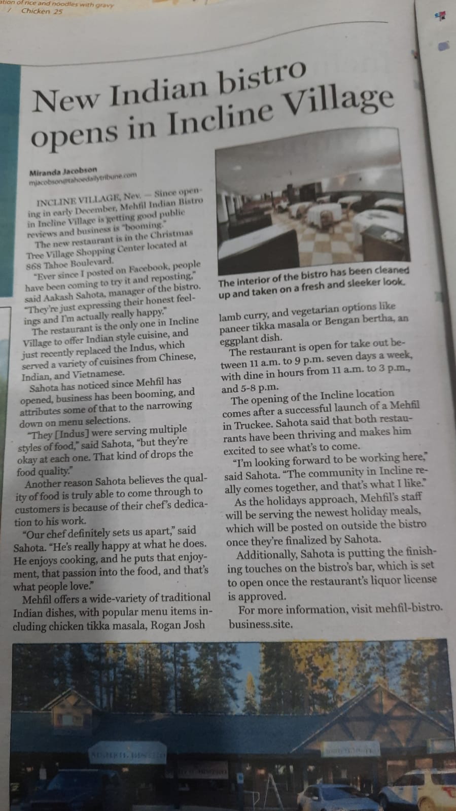 Our family drove through Incline village and found this place. We had decided to stop here and the food was delicious. The naan was crispy and had a nice texture to it. The chicken and gravy in the butter chicken was very tasty.The staff were also very nice and treated us well. Also our kids enjoyed the food. I would definitely recommend this place to anyone passing by as you won't regret it.