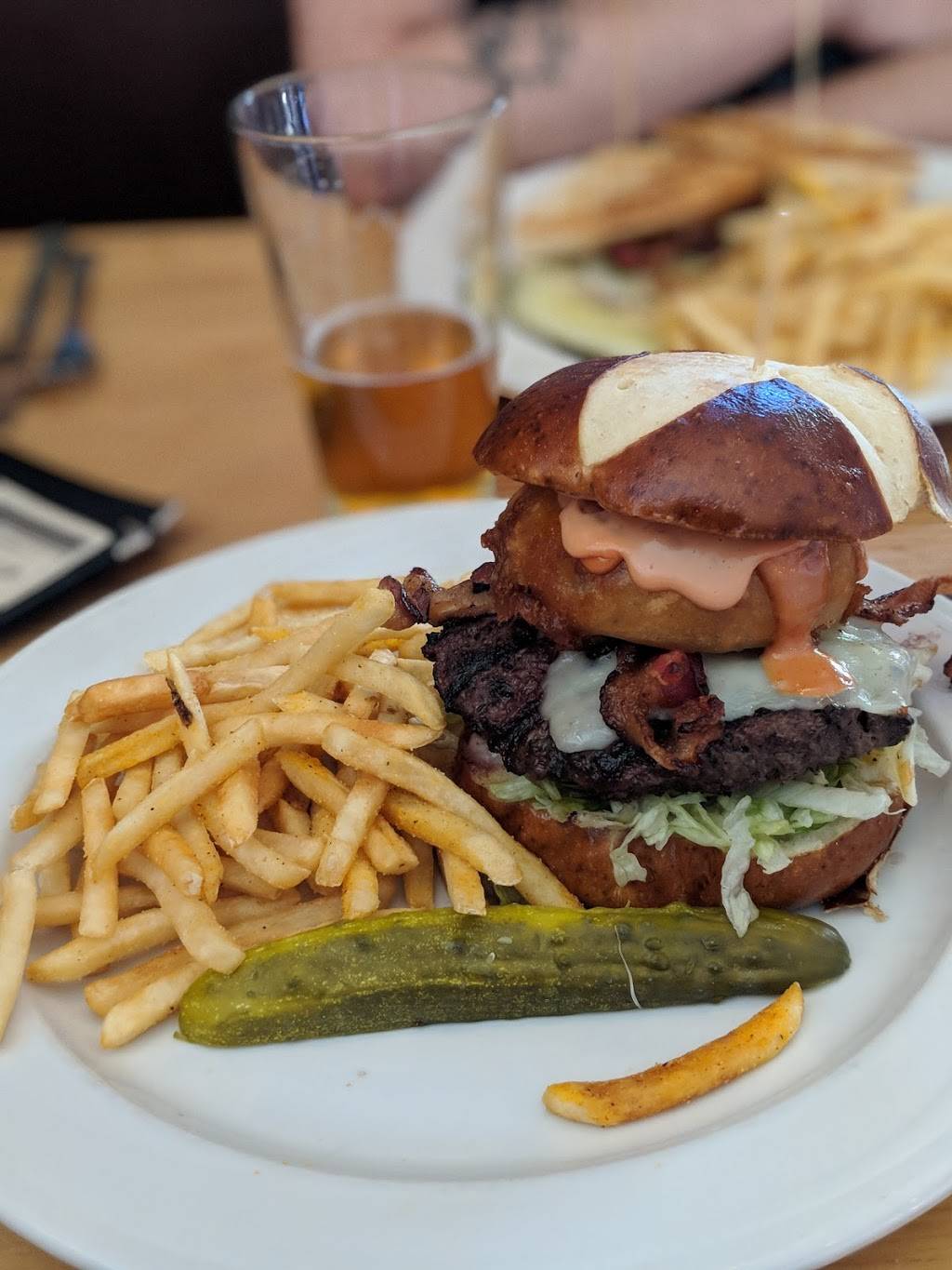 Good selection of local beers and great burgers. The bison burger was prepared perfectly. Popular hangout place that gets crowded quickly, even on weeknights.