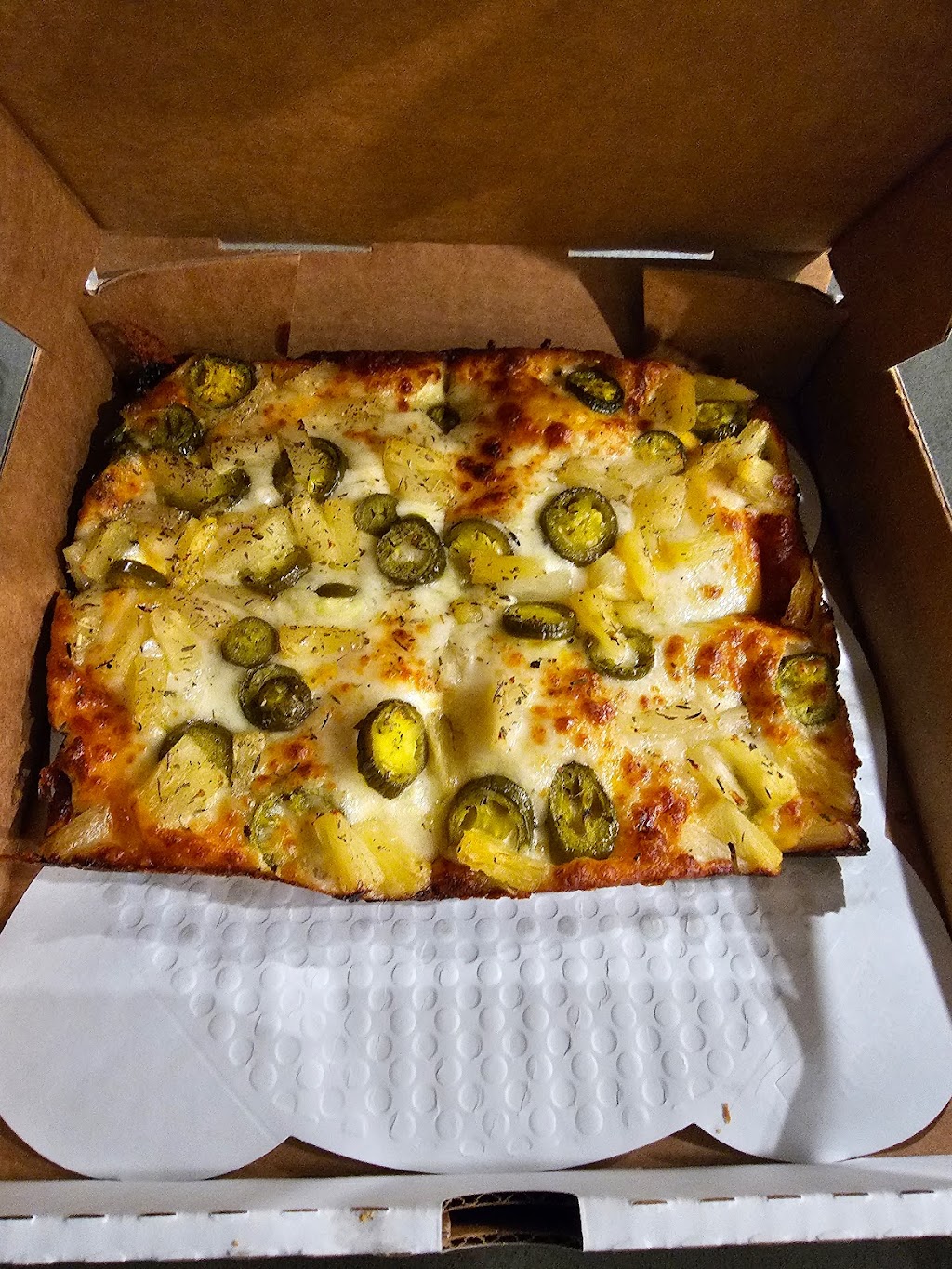 I'm only basing my review off of the taste of the pizza and the price. I'd say for the price I prefer Little Ceasars Detroit Style. The toppings are good and the seasoning on the crust gives it a little extra taste but the pan pizzas are personal pizzas and the crust is a little too chewy...it should be cooked a little more