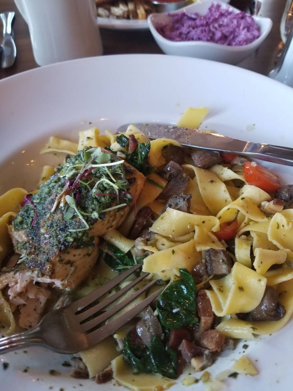 This was our second visit, and wont be our last! I ordered the nut herb crusted chicken with carrots and mashed potatoes. OMG was that a fantastic meal. Served hot, moist, and delicious. What the chef did to those carrots was outstanding. Not a big veggie eater, but they were exceptional. We shared the Chocolate Chip Ricotta Cannoli with Honey maple candied walnuts...the best I have ever had, worth every calorie!