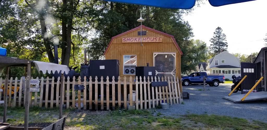 NH BBQ? Yeah! Smokehouse, trailer kitchen and unisex restroom. Sweet friendly kids take your order which is ready in minutes. Mosey on over to one of the picnic rankles and watch the motorcycles and arcs go by.
