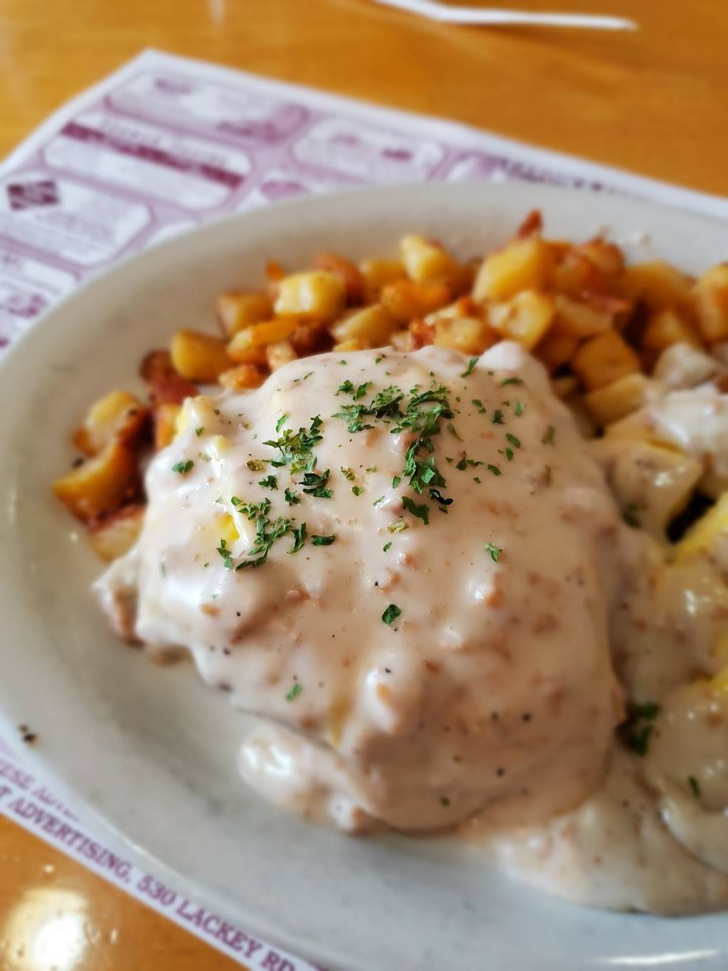 Wonderful place, great service... Very attentive, made sure we had our drinks refilled without asking, checked in on us about our food. The food tasted like home, eggs were fluffy, home fries made the way I like. Very filling food! My son really enjoyed the pancakes. We will definitely be back!!