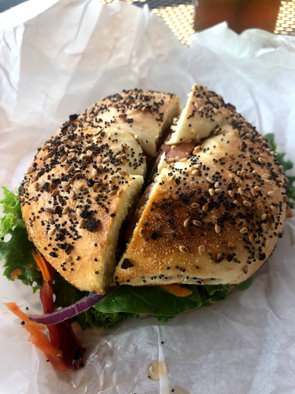 Really tasty bagels- I had the lox, which was complimented with cream cheese, capers and onion on roasted tomato bagel while my son was happy with his everything bagel. Nice staff with great smiles. Coffee was perfect.