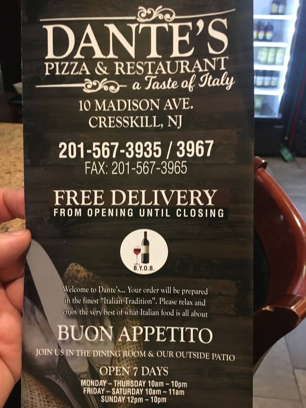 | Website: | https://www.facebook.com/Dantespizzaofcresskill/ |