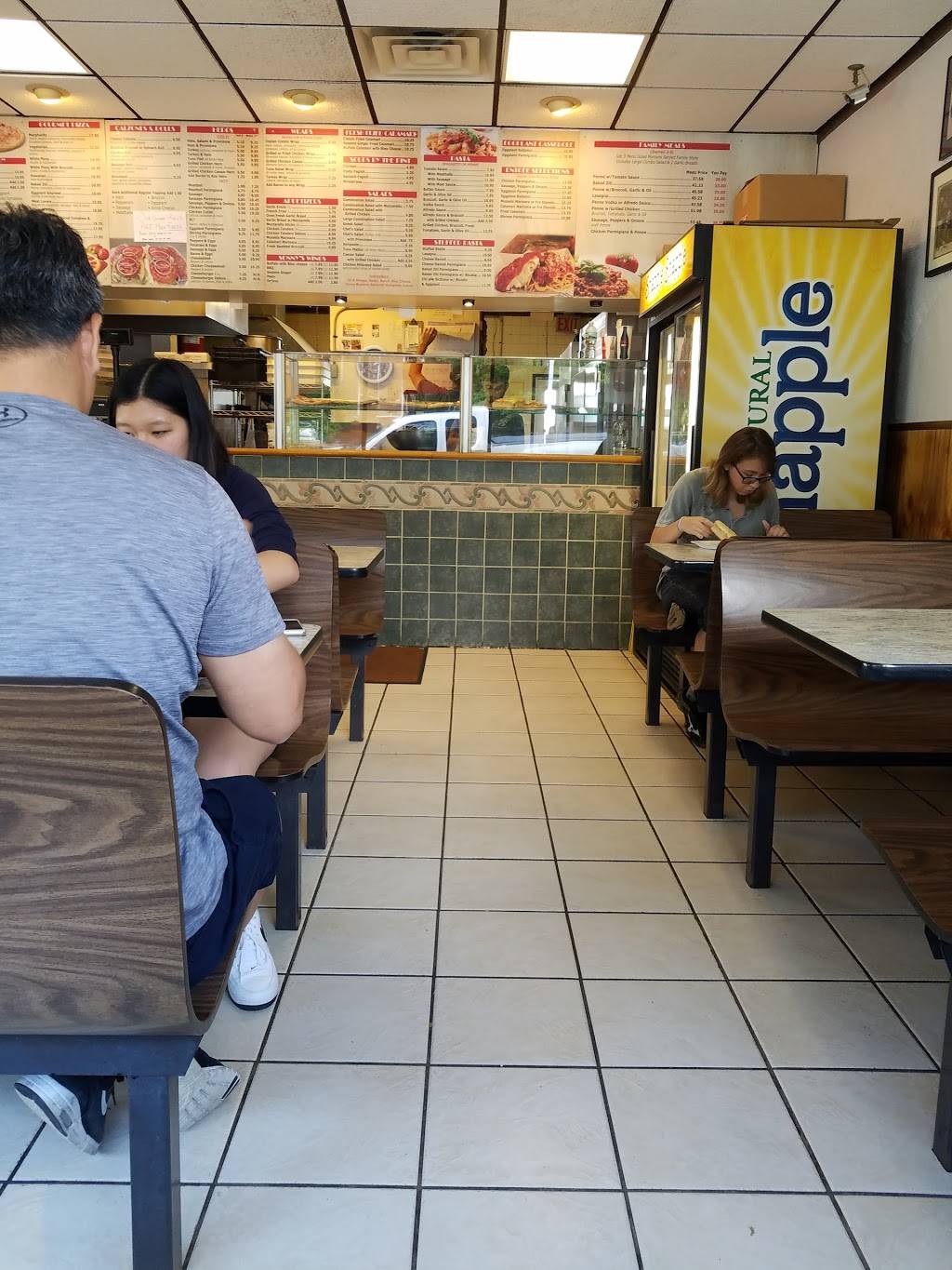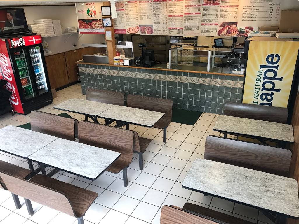 A nice little pizza place. Has parking in the back and seating inside for about 30 people. They have a nice menu, but only have a few selections to pick from that are ready to heat. The white pizza is fantastic! Overall nice place for a quick slice of pizza ????