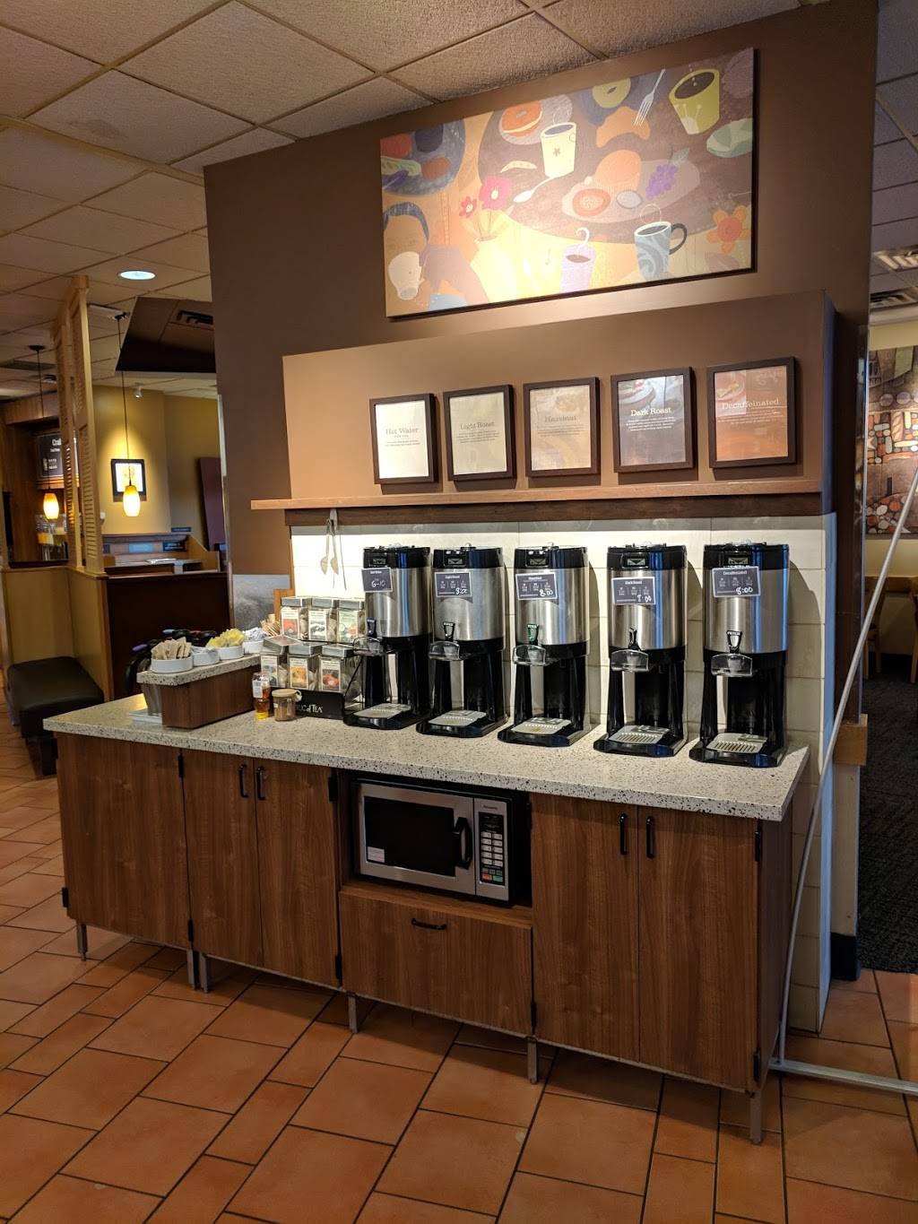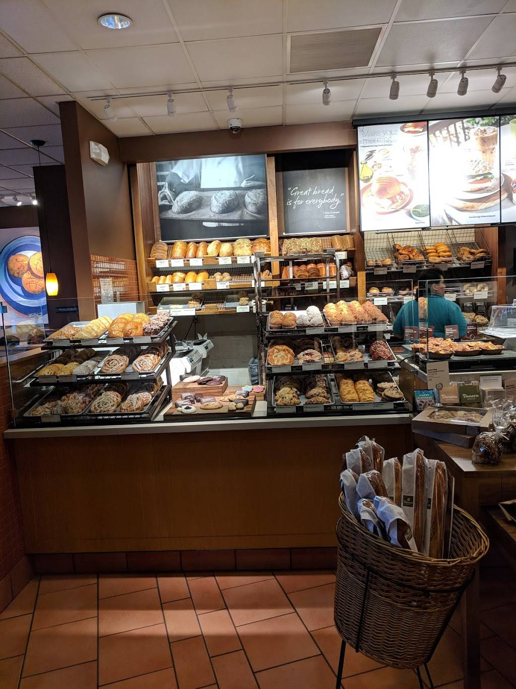 Very busy location. Parking was tight but do-able. The tables were suspect, a little dirty. Food was standard for a Panera. I was not exactly impressed with anything orterribly bummed about anything. So that sounds like a 3-4 star experience.