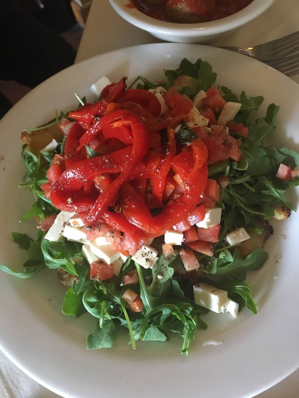 Very generous portions. Garlic bread was too easy to pop in the mouth....could be dangerous, lol! Walnuts in the salad were very stale. They were able to make changes from menu item for me. Service was a little slow. Would give 3.5 stars if it was an option.