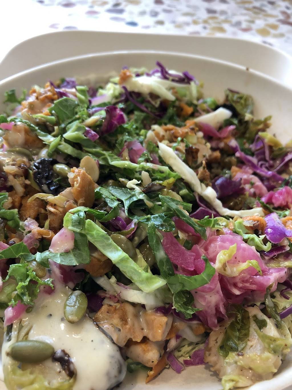 Updating this review after eating here a few times, wanted to note that the salads are really pretty delicious and filling/satisfying even to someone who is used to steak and potatoes. Everything pretty fresh, you can build your own salads if you prefer, staff are friendly/accommodating/polite. Most salads served on healthy grains or cauliflower rice, most have protein options like chicken, shrimp. some healthy drink options like natural lemonade that is not overly sweet, unsweetened iced tea drinks, that sort of thing. The ambience is fine, music not too loud, seats comfortable. I'm thrilled to have a satisfying healthy place to eat.
