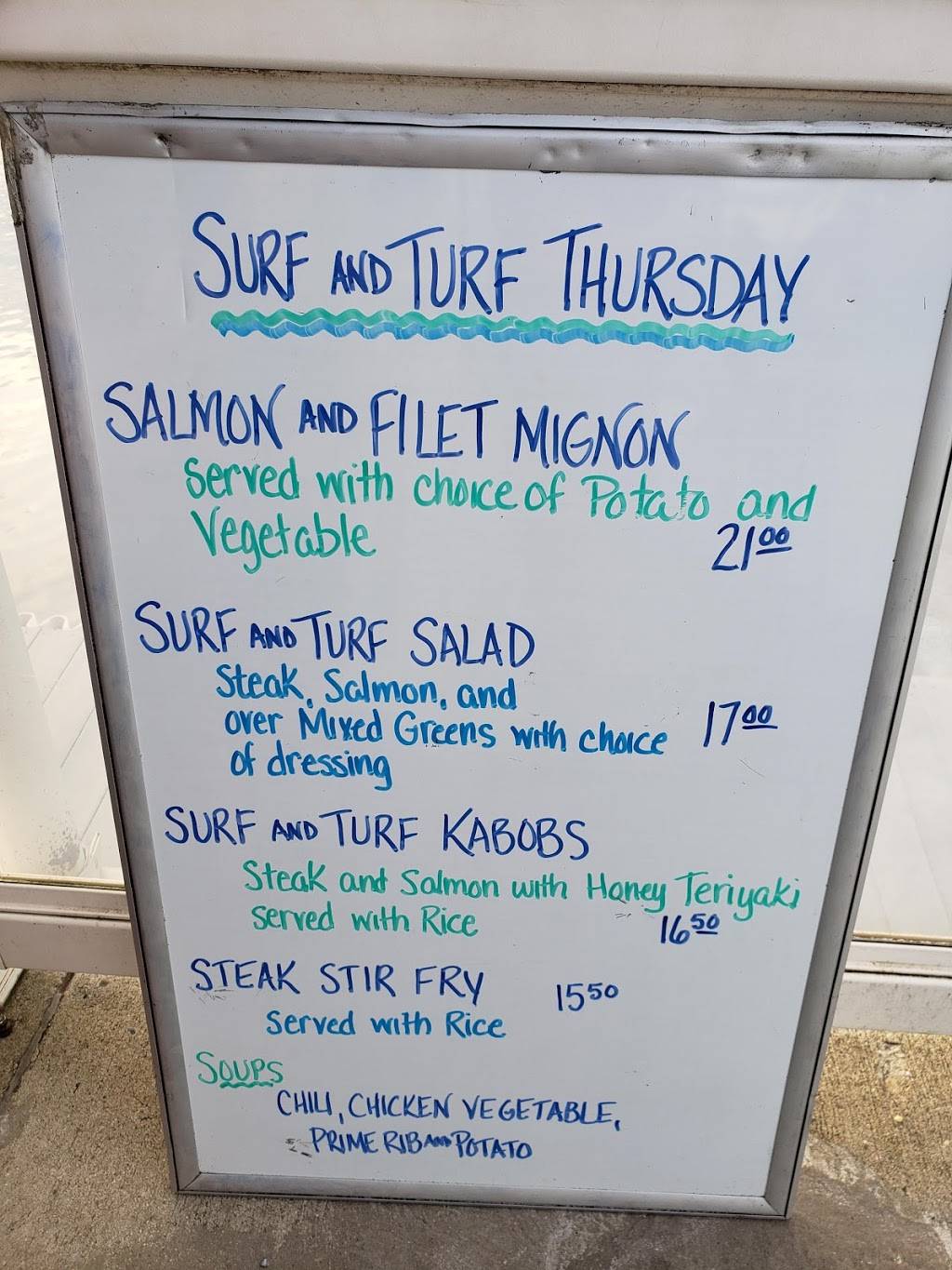 Always good food, great place to sit a d relax while watching the water and boats