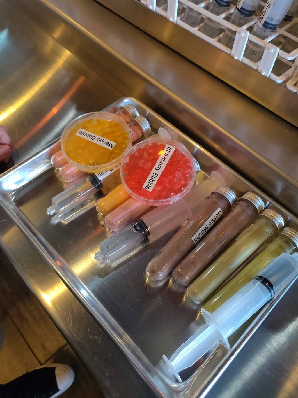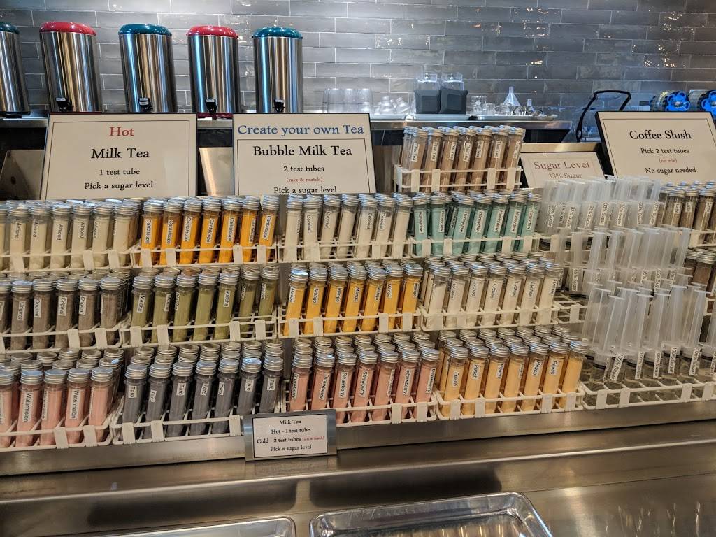 Sooooo cool! By far the coolest bubble tea place around! Great service and cool concept of creating your bubble tea yourself by selecting ingredients from test tubes and syringes! Bar high top seating, good flavor selection, clean environment.