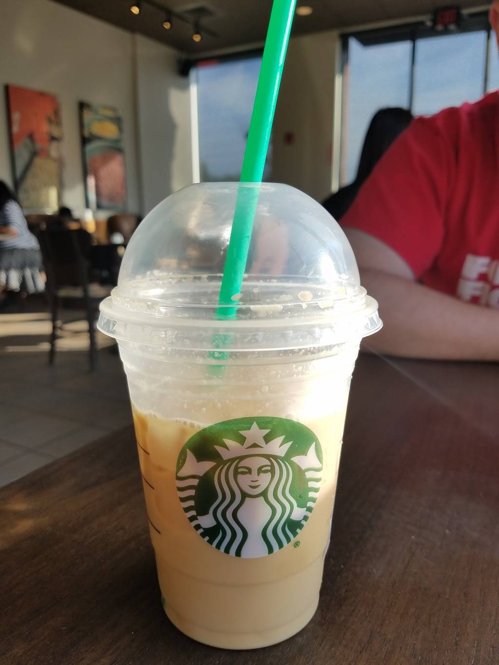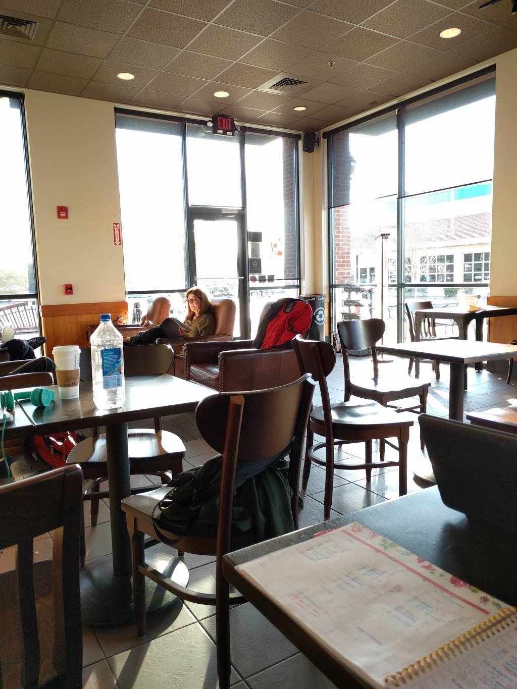 Fair Starbucks location that is usually fast and pleasant. Seating and table arrangements are less then desirable here.
