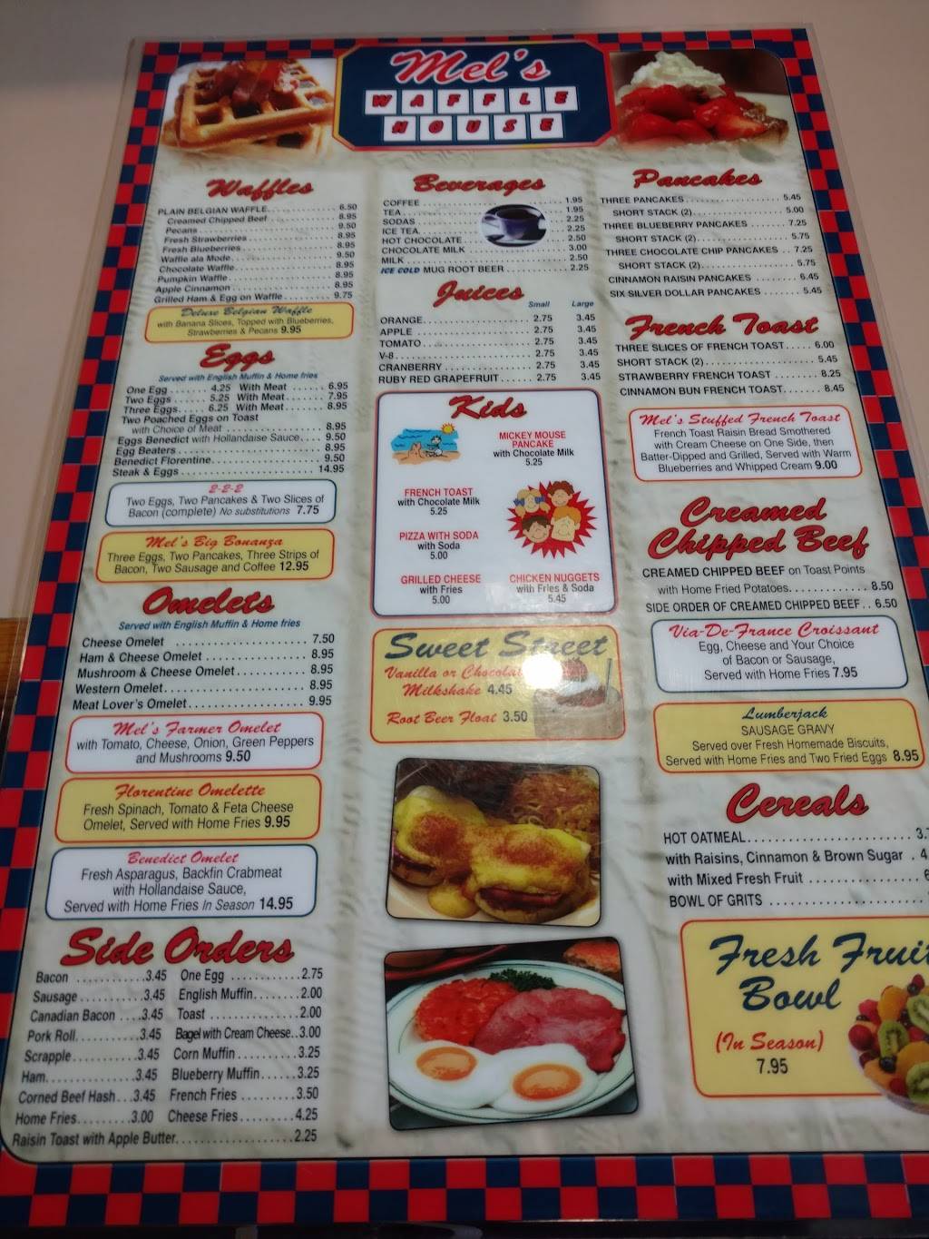 This waffle House is a local favorite for breakfast on the weekends and to visitors to the area on Sundays after church. If you don't like Large crowds, avoid Sunday morning breakfast! Otherwise, the food is pretty good-typical diner quality. The prices were a little above average, but I'm told they are being LOWERED! Finally, the service is usually above average in speed, accuracy, and hospitality. Overall, I recommendation Mel's for breakfast, brunch, or lunch if you're in the area!