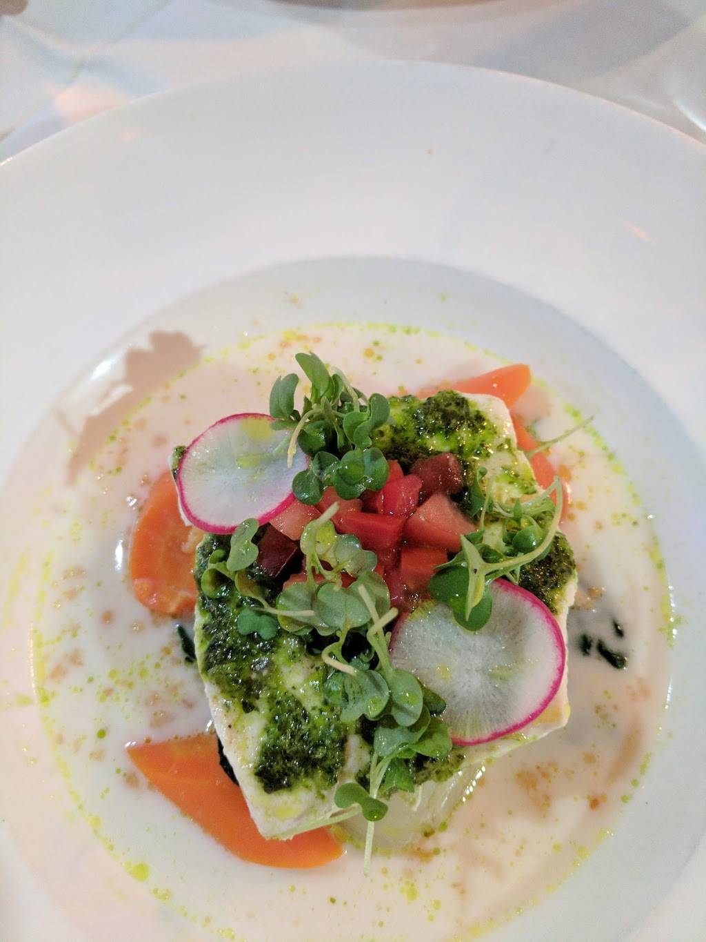 BYOB had me wondering. But this place was awesome a definite don’t miss! You can order wine and beer from Fred’s Tavern and Liquor store nearby, they will deliver. The service was excellent, thanks Tim! The food was extraordinary. My wife ordered the arugula salad first course and the scallop entree. I ordered the Ahi first course and Ribeye medium rare plus. Ahi came in a ponzu sauce, was delicious. My wife loved both her dishes, and my ribeye cake out perfect. I’m picky on a good ribeye but I must say theirs was outstanding. The chocolate dessert was also excellent. Presentation was also excellent. Highly recommend. It’s a local favorite and was full so reservations are recommended.
