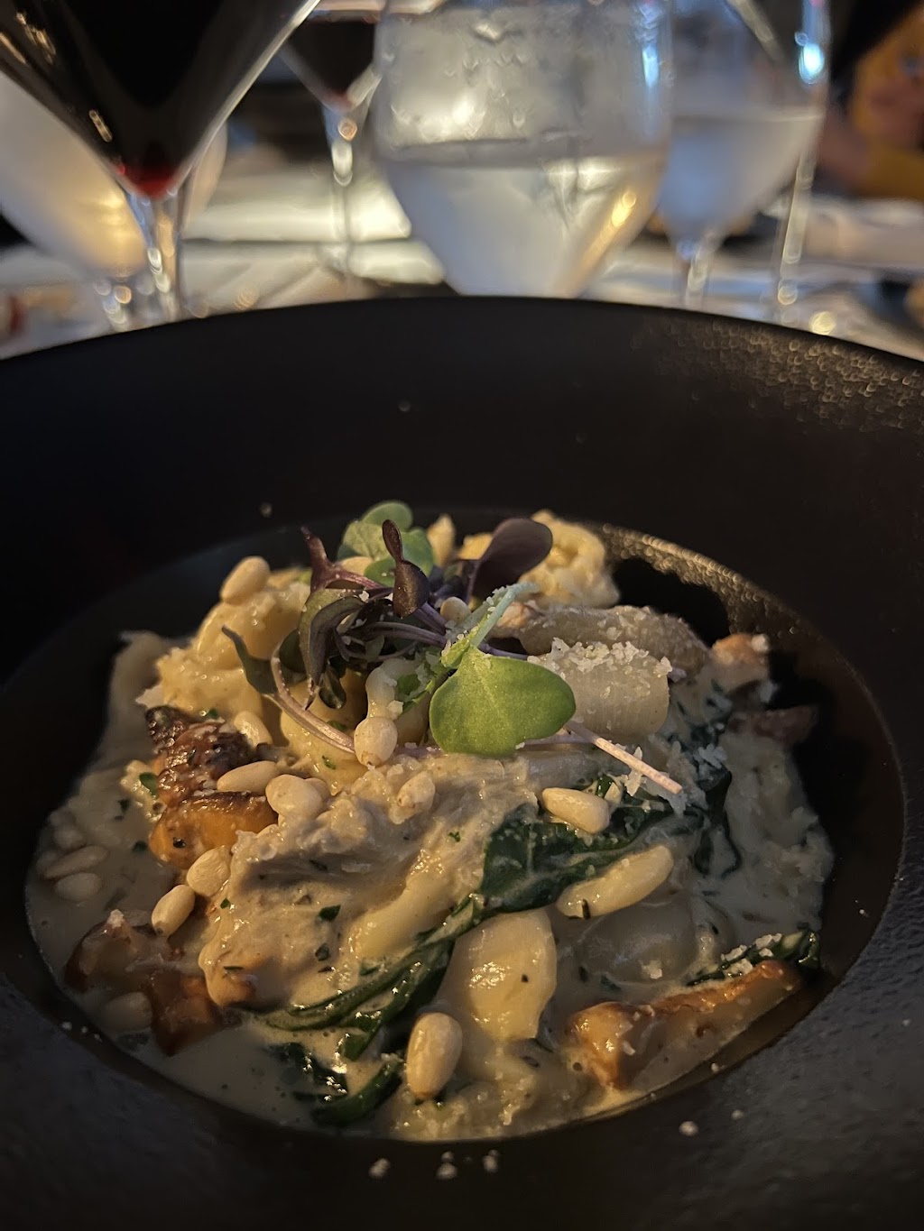 This new restaurant exceeded my expectations. From the friendly hostess to the knowledgeable servers to the creative chef. The truffle potato leek bisque was smooth, creamy, and delicious. We tried the New York strip and the pan roasted poussin/chicken. Both cooked and plated beautifully. The space is very cute too. Cute mushroom artwork throughout the restaurant and the bathrooms. We will definitely be back!