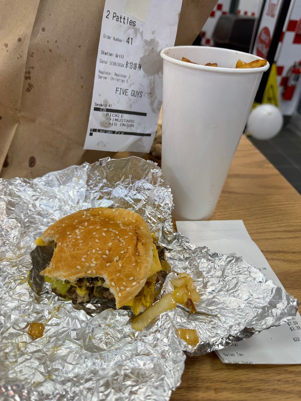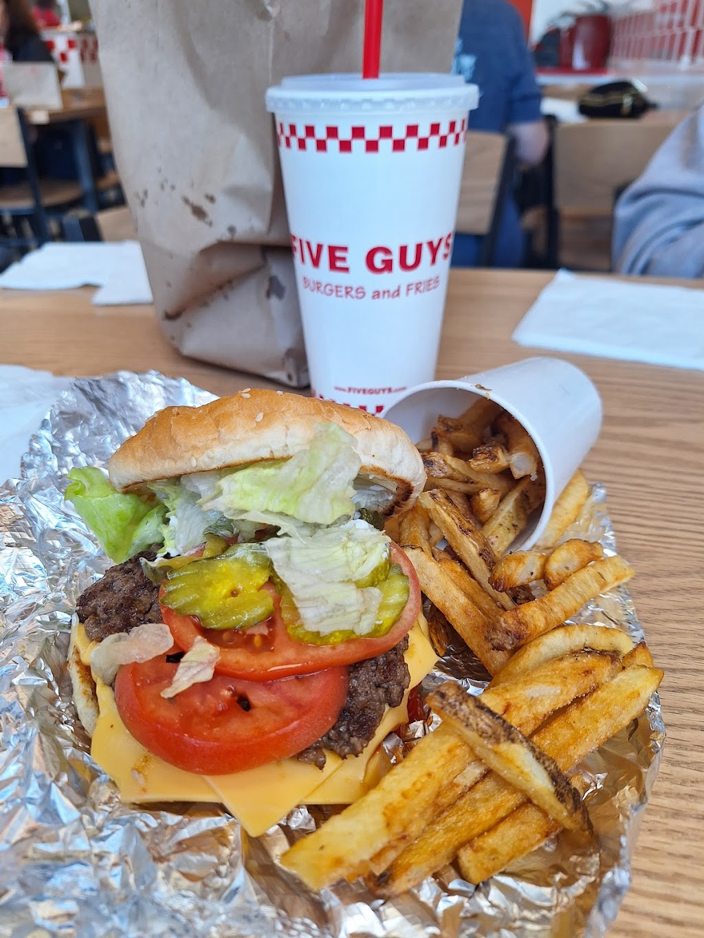 Vineland Five Guys is open! Finally great to have more options closer to home. The place was packed, they have online orders not sure how it works. I order in person, took a while which is expected, they just open up and a lot of people coming in. The team was busy and friendly. My order was incorrect but I ate it, it was good.