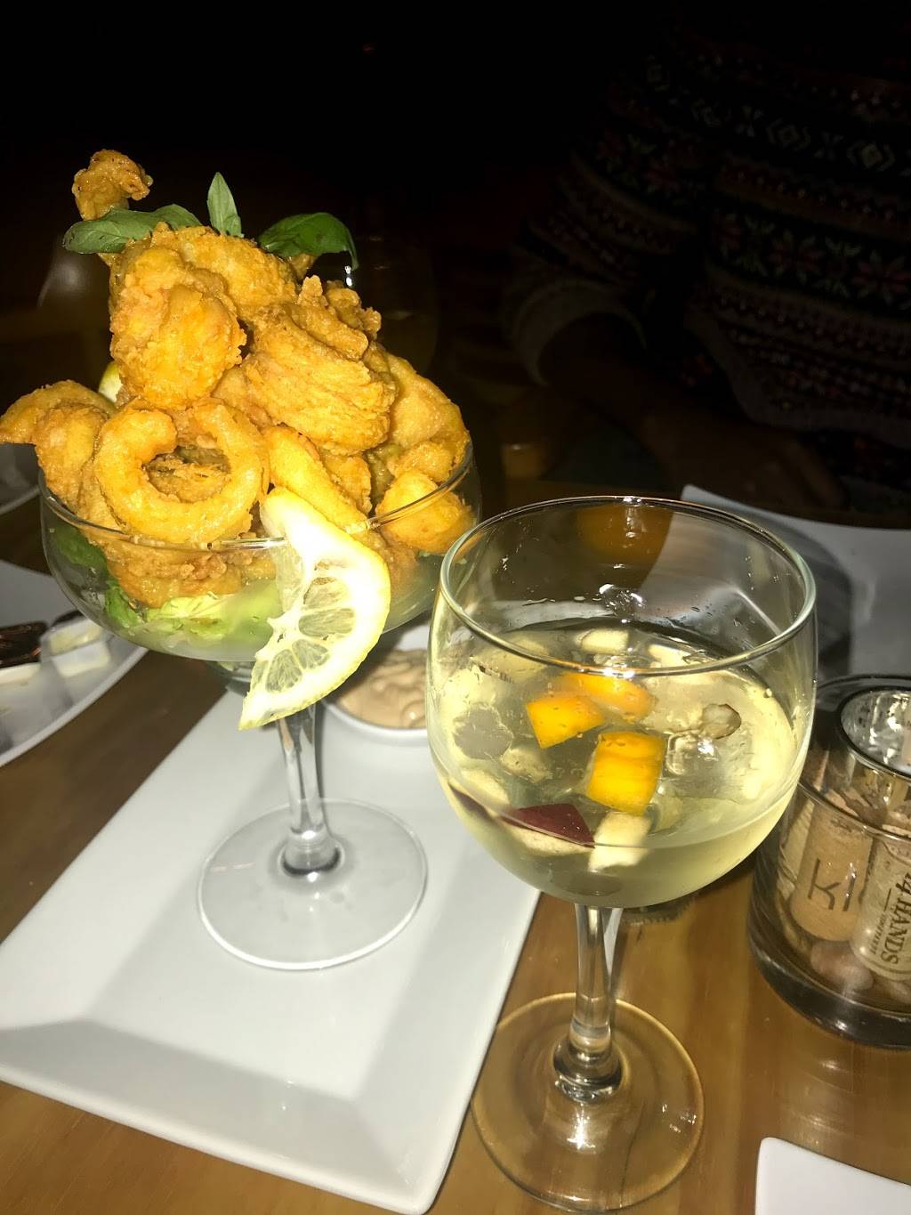 My girlfriend and I enjoyed a great date night here. We were warmly greeted and immediately seated. Our evening was filled with sangria and calamari starter both of which were frankly delicious. This wine bar has a warm and cozy feel that helped us forget the cold outside. Soothing acoustic music played in the back drop as we enjoyed our drinks and an incredibly delicious cheese platter. Overall an amazing and enjoyable place, with friendly staff. We can’t wait to go back!