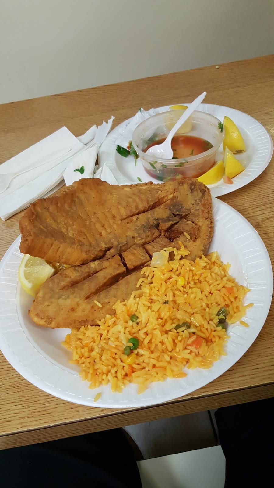 Is always pack. They have a wide variety of fish to choose from. Side dishes are well portioned and can satisfy 2 people. The ceviche is good too. Cash or charge is accepted.
