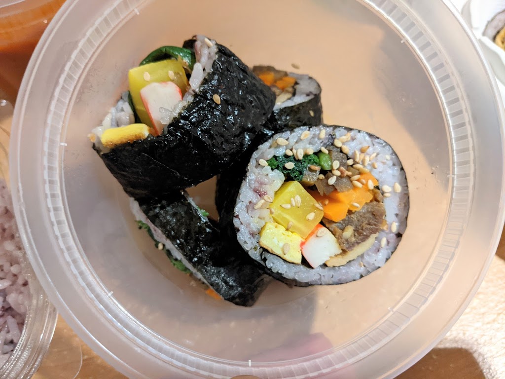 This is a place inside of the Lotte Market food court. Seating is limited which hurts some of the eateries in this food court. This one especially. Food is cooked on order so it takes a little time to get your food when you order. Prices are decent for Korean food. We had the ttukbaegi Bulgogi and a Kimbop (beef). I really liked the Kimbop especially for $5.99. The Ttukbaegi Bulgogi was solid and a decent price at $14.99. With the more expensive dishes you also get several sides which included purple rice, beans, kimchi, bean spouts, pickled radish, and I believe a small dish of tteokbokki. The sides are hit or miss… I didn’t like what I believed was a sampler of tteokbokki as the flour cakes and the sauce didn’t go well together but the sauce and the fish cake slice there did go well together. The kimchi was forgettable. I did really like the green beans, bean spouts, and the pickled radish sides. The rice was just right too. Overall, I liked the place and want to try some more dishes here.