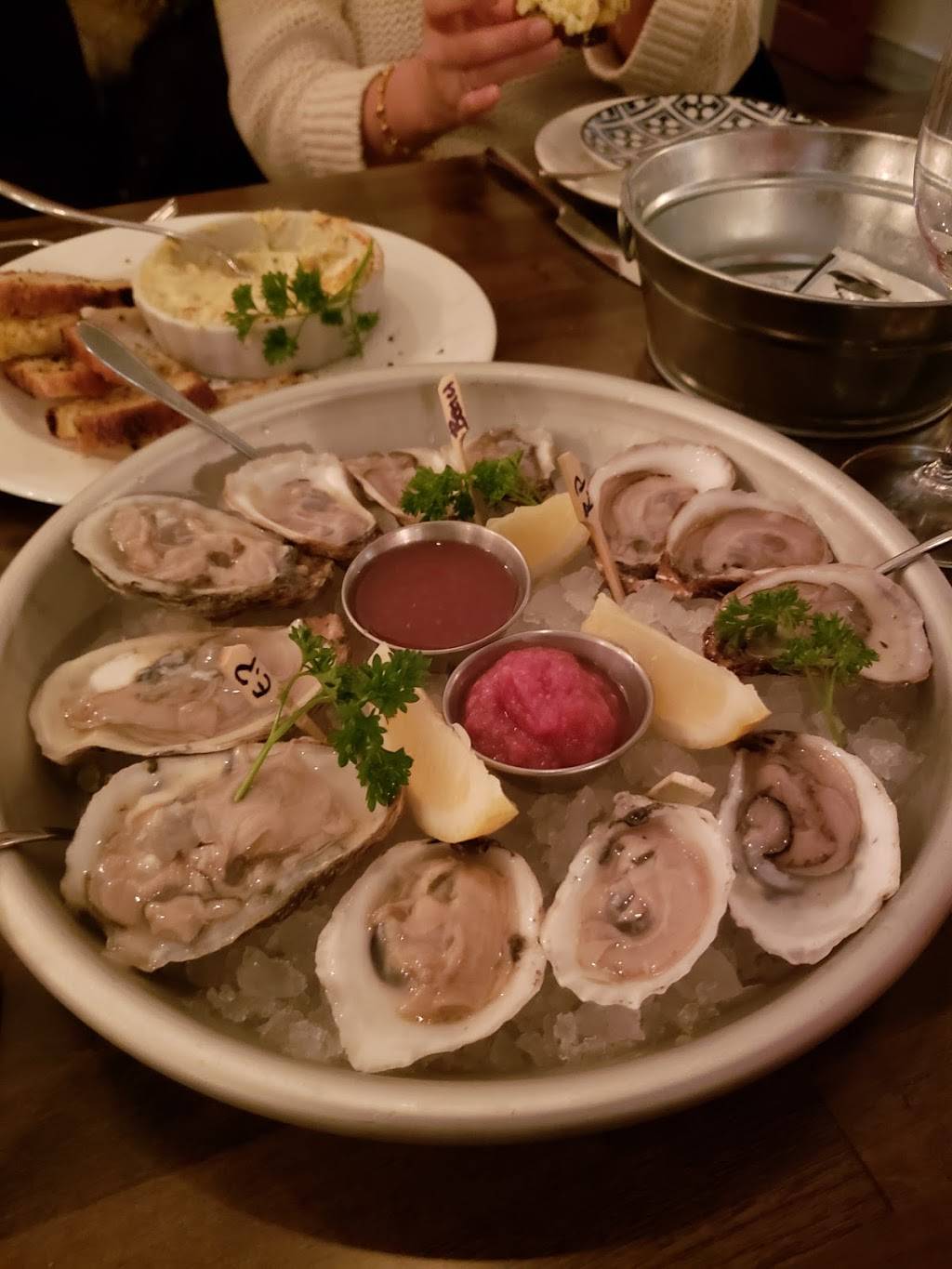 Great location conveniently across from a parking garage. Full bar with a great bourbon, single malt scotch, and wine list. Fresh oysters, crab cake sandwiches and lobster rolls. Very nice atmosphere for a date. The staff is polite. Just expect the bill to be on the pricey side.