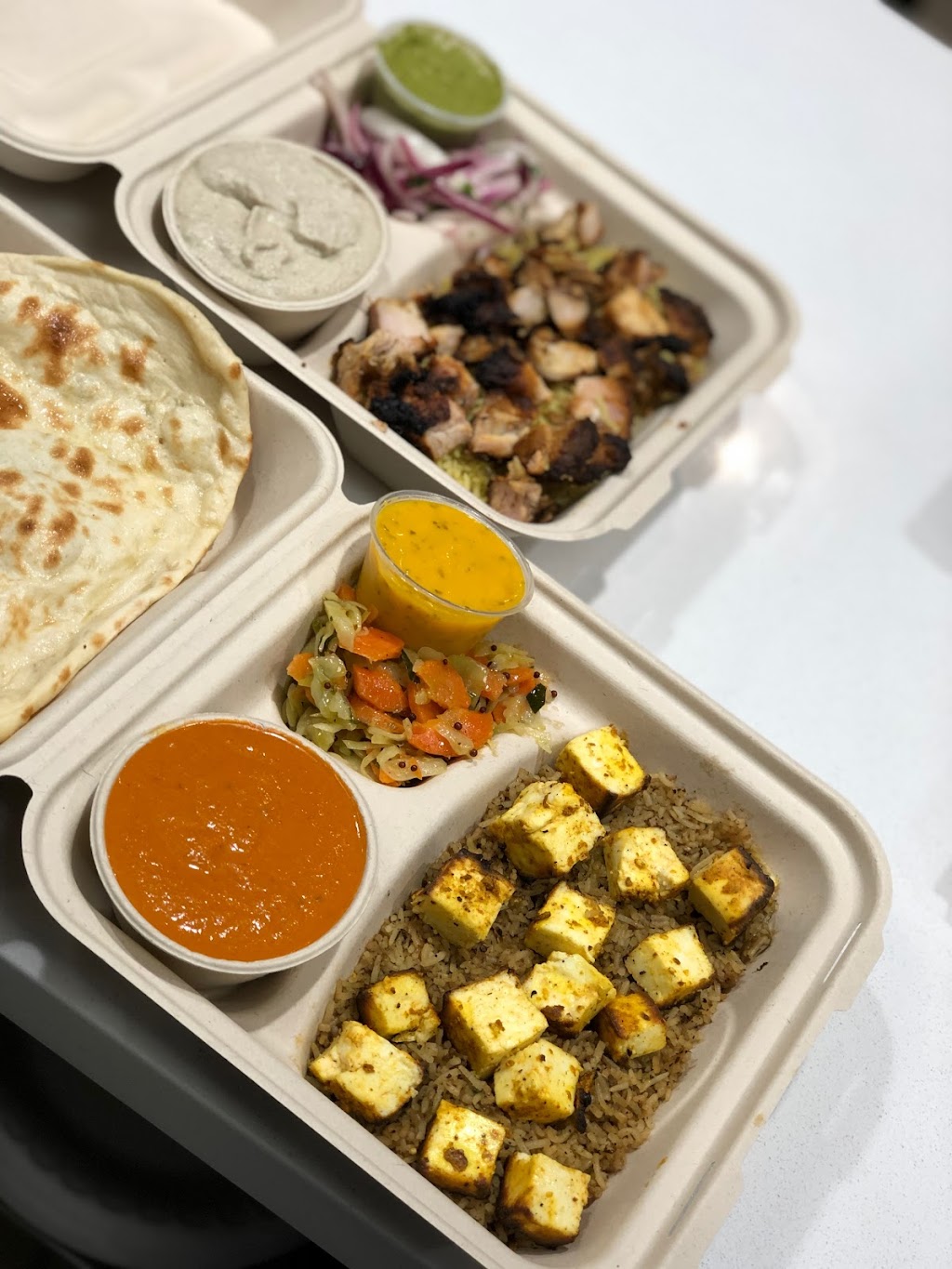 They make the naan fresh for you when you order it! Butter chicken over rice was very good. Get the mango chutney. You will not be disappointed eating here.