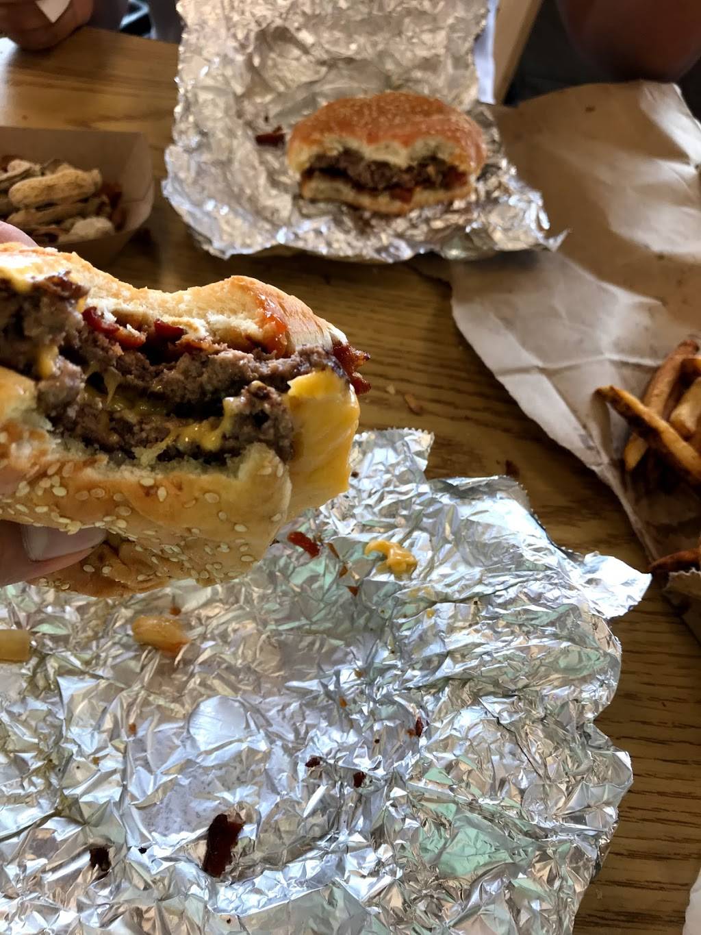 Five guys has the best burgers in town. They also have a great shake.