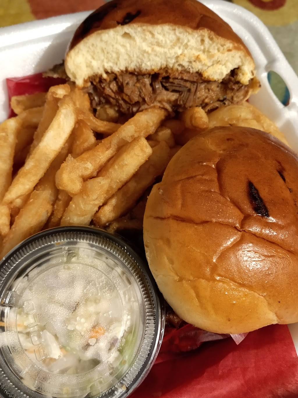 Had take-out this time but we'll eat in on our next visit because the place is really cozy and fresh. Tried the brisket and Mac and cheese which were so delicious and seasoned perfectly. Cole slaw was good and the fries taste homemade. Staff was really friendly too. Awesome place, definitely going back soon!