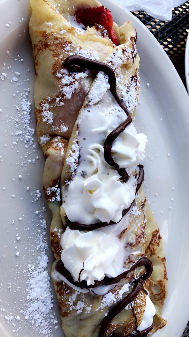 Great food breakfast and lunch. Dessert crepes to savory style you will find what you are looking for. They have a full regular menu with more main stream style breakfast options minus the crepes so you can go with anyone.