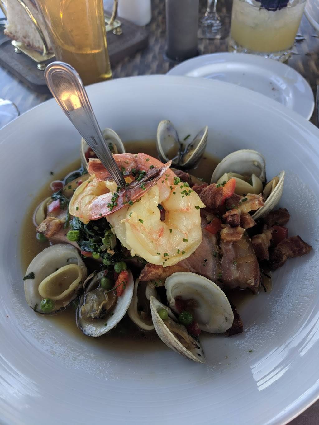 Beautifully decorated all open dining area with a full view of the Atlantic Ocean. Staff pleasant and very accommodating. Food is fabulous!! We cannot wait to go back! Very highly recommend!!!!