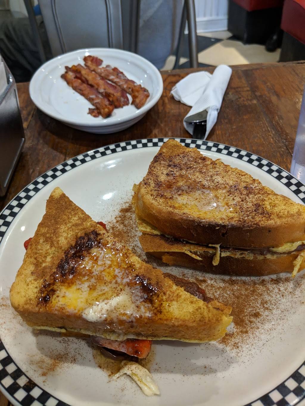 Great food and service! This place is a local treasure, with a host of locals and foodies as regulars. It has a nostalgic 'soda shop' decor, the servers are friendly and enthusiastic. Make sure to check out the awesome blackboard specials, they rotate constantly and always contain choices to please. Can be crowded for weekend breakfast, does not take reservations but tables of 5 or more can call ahead. Also great for call ahead take out.