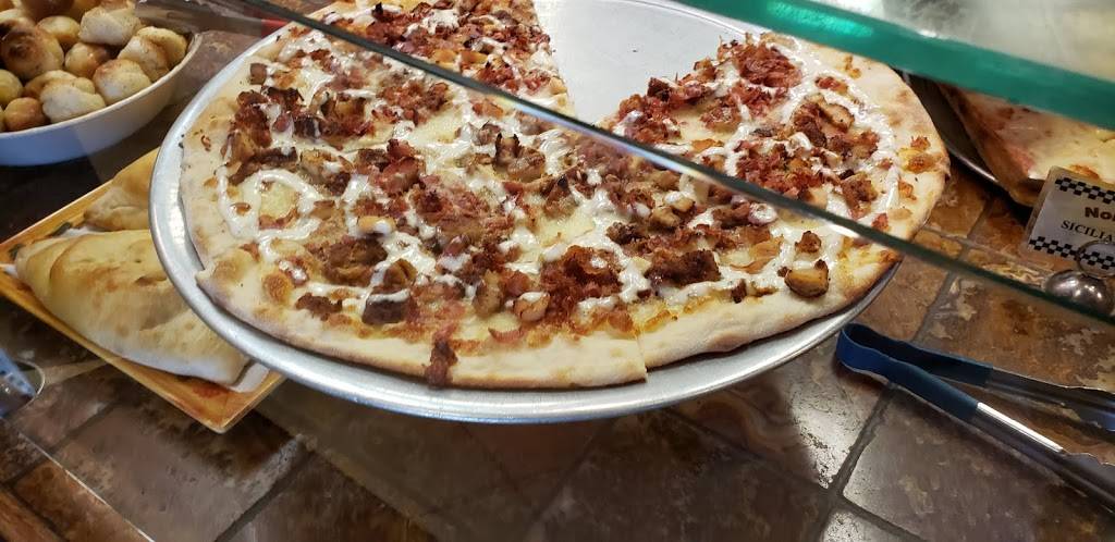 These guys work hard and fast. It is the busiest pizzeria in town and the lines may sometimes get long but your order will always be ready in a good amount of time. The pizza is of amazing quality, one of the best in town. I always get the chicken pizza, just a mouth full of flavor in every bite. There is plenty of parking because it is in the plaza. Parking is free and handicap parking is no more than 8 feet from the restaurant. I have never dinned in but I've always done take out, never had a complaint about anything. Very nice staff and respectful. If you are going to eat pizza anywhere in town, eat here. Take my word for it. And if you love chicken parm sandwiches, well... you're going to really love theirs, I always ask for extra sauce on the side because I like a lot of sauce in mine.
