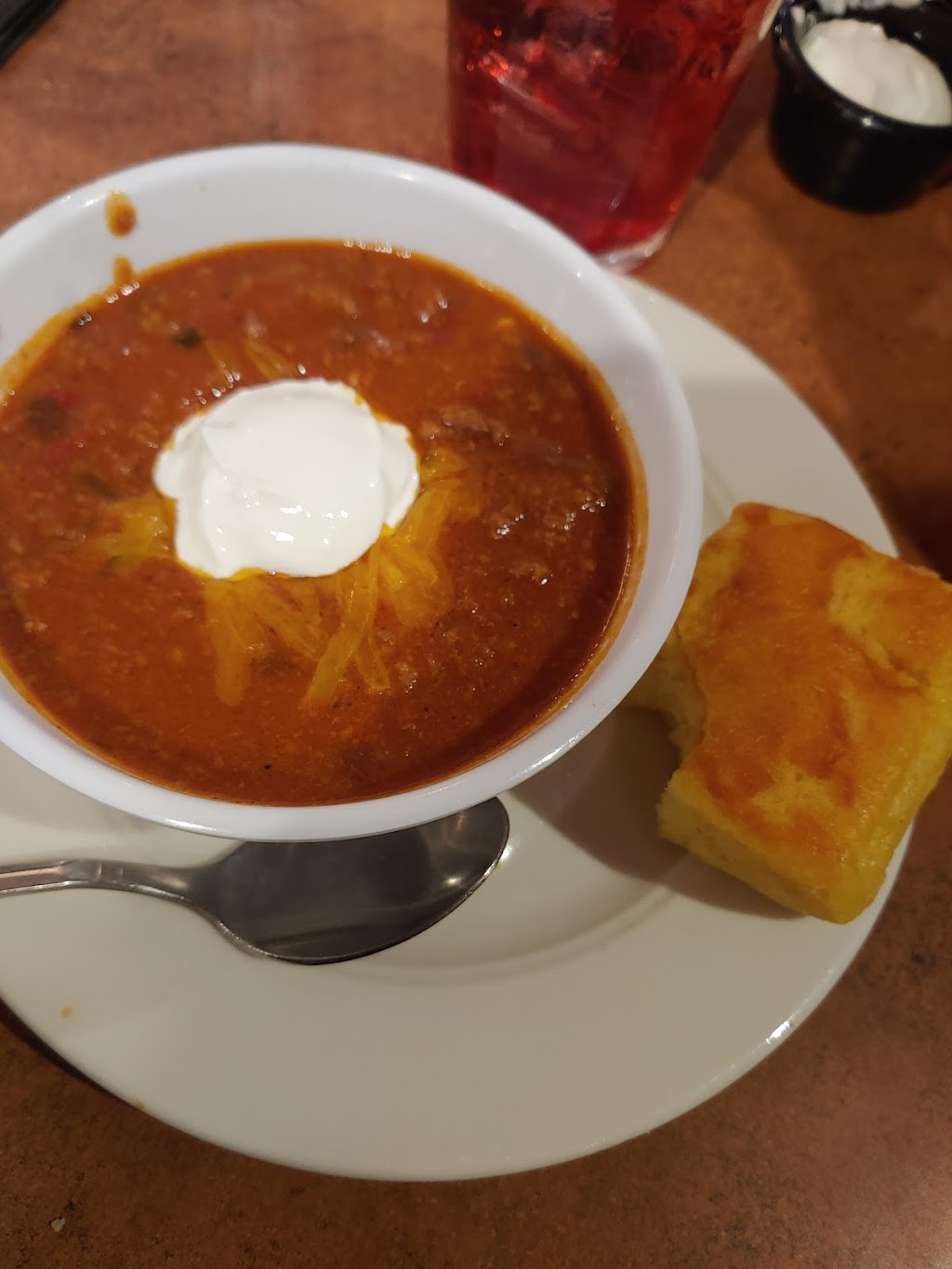 Place was empty and wait staff was all standing around talking. Took over 10 mins to get a menu. We were discussing at that point where we should go since it seemed we weren’t getting food there. Finally someone brought us the menu. The food took forever to come out even thu the place was empty. I am pretty sure someone was smoking in the building in a back room the whole building smelled like cigarettes. I think this place would be great for night life. I think they had a country band playing that night. Deff would check out the after dinner activities. Seem like a good place to see a band play