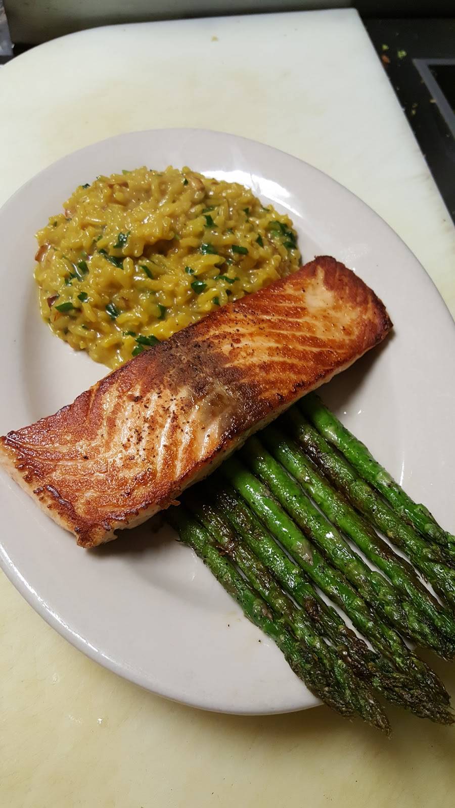 Gluten free pizza is okay - not terrible, but not the greatest. Probably a frozen crust but it’s thicker than usual which I liked. The grilled chicken with broccoli was delicious. The broccoli was cooked just right and had tons of garlic.