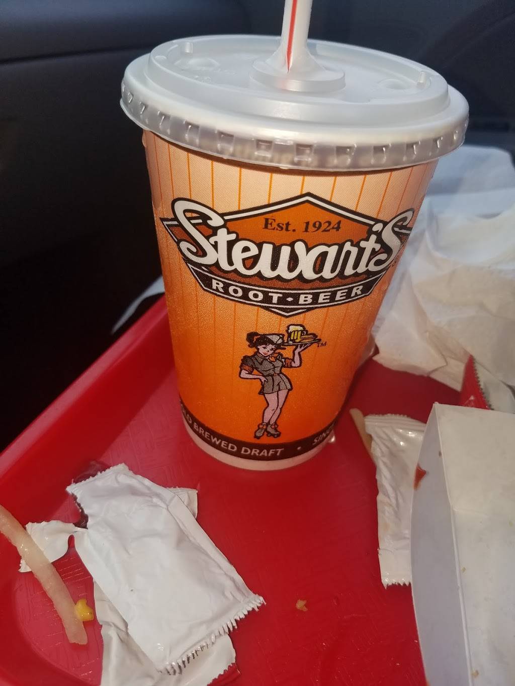 Classic Stuart's food was good...root beer burgers dogs cheesesteaks. But a large sign greeted us saying "no car hop service"? That's not good. It's what makes Stuart's unique. Also forcing my party of 4 to sit down on the run down patio with overgrown weeds and a fresh coat of paint needed everywhere is probably not a good idea. It was an average or ok experience but it could have been so much more.