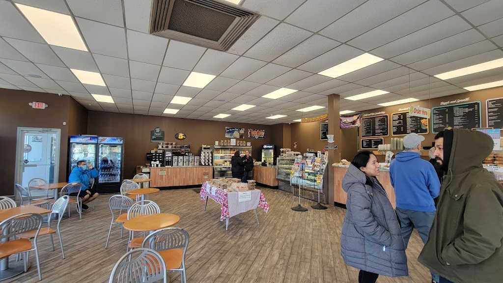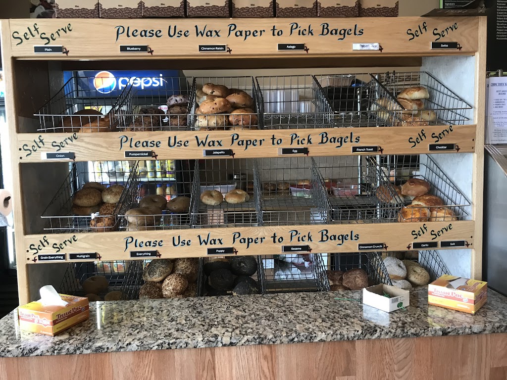 First time here, we just happened to stop in because we were having coffee right across the hall. They were pretty busy but move fast. I got a garlic bagel, egg, cheese and spinach it was good. Bagels are fresh. They have indoor and outdoor seating. I would recommend.