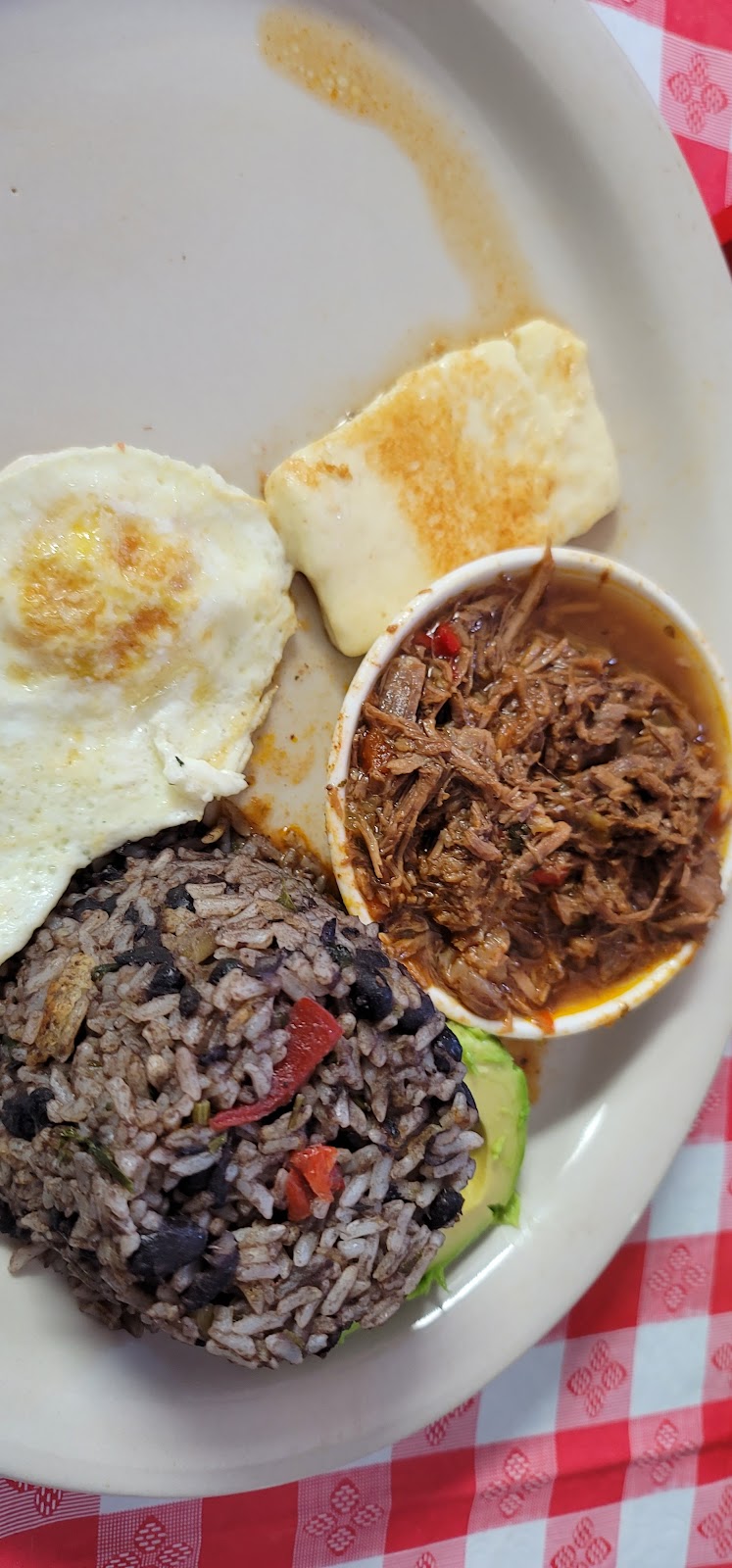 Loved the gallopinto with carne en salsa. The salchichon is homemade...