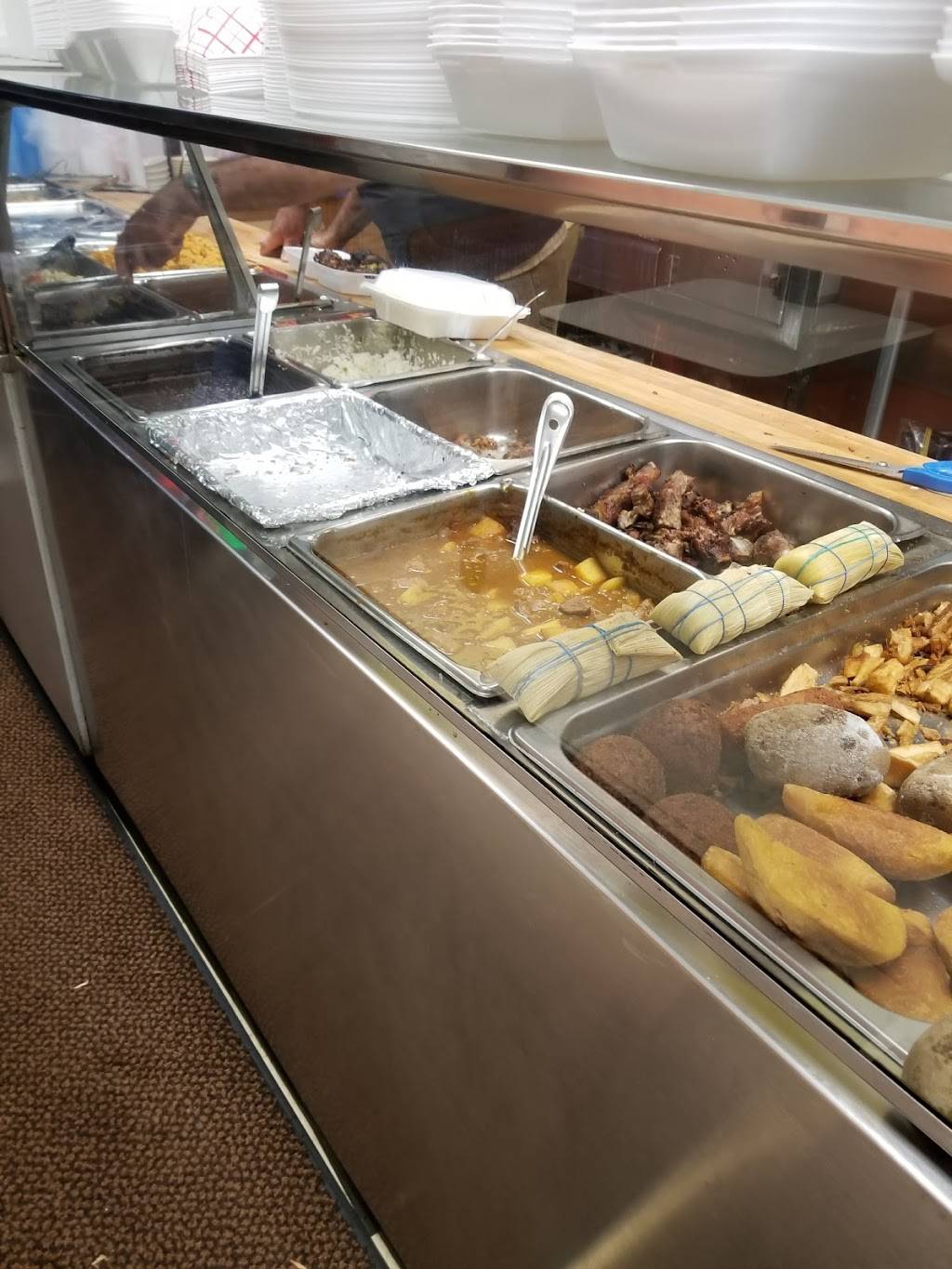 This restaurant serves very generous portions of Latin American food at inexpensive prices. The food is on display behind glass and you can choose what you’d like and they’ll plate it into a take-out container. They offer a daily meal special too. The employees are friendly and efficient and speak both Spanish and English.