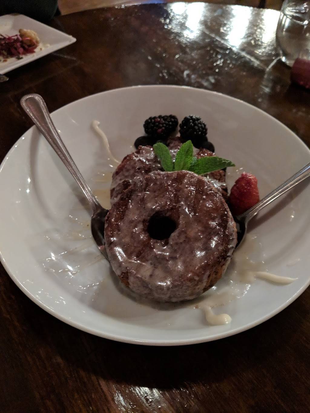 Food is very good, but we left hungry. The chicken is delicious but tiny portion. It would be great if they gave you bread. My husband enjoyed his burger, and our friends enjoyed their pasta. Took awhile to get dinner, but server was great. The donuts for dessert were delicious! Very nicely decorated.