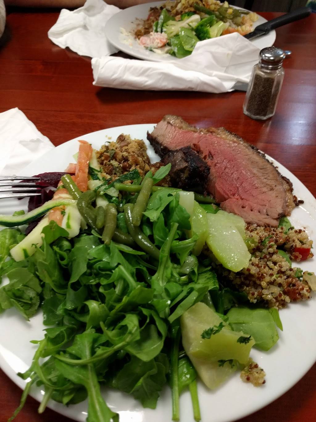 They have a great variety of salads and fruits. The meat is fresh and ready at the time you get there, so no time to waste!
