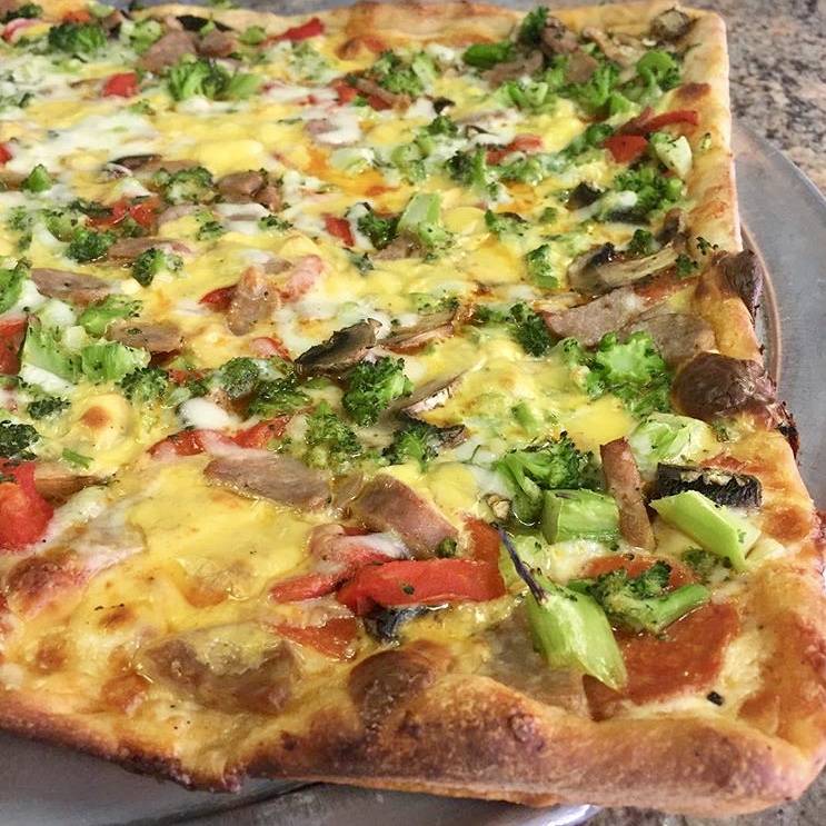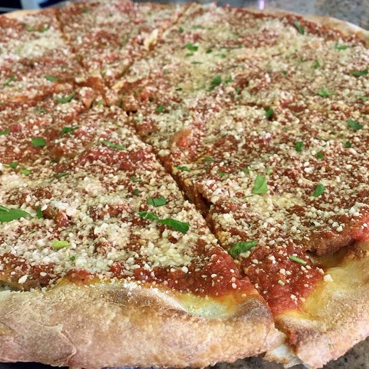The cheese slice I had was great. Crust bent, but didn't break. Grandma slice was incredible especially the sauce. Very friendly very clean and very good pizza.