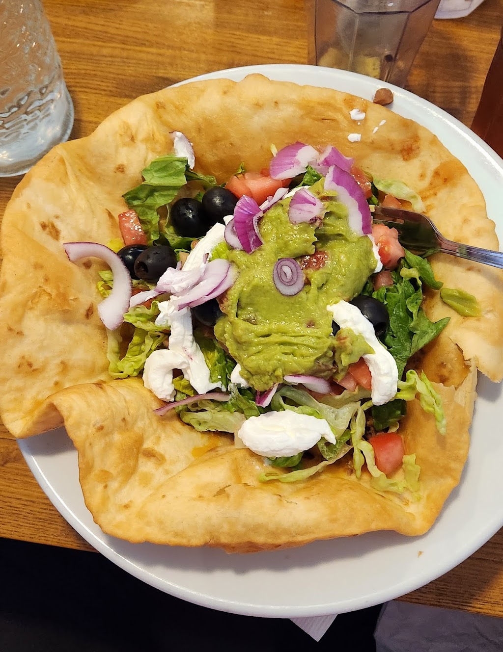We were staying at the motel across the parking lot and decided that even though it was fffreezing outside we would walk over and try the local fair. The wait to be seated was quite long, but the merchandise area was interesting and kept us occupied. We had the fried mushroom appetizer then I had the Chicken New Mexico and my wife had the Mushroom Jack Fajitas. The service was awesome and the food well prepared and presented. The breading on the fried mushrooms wasn’t my favorite, but it was good. All in all it was good experience.