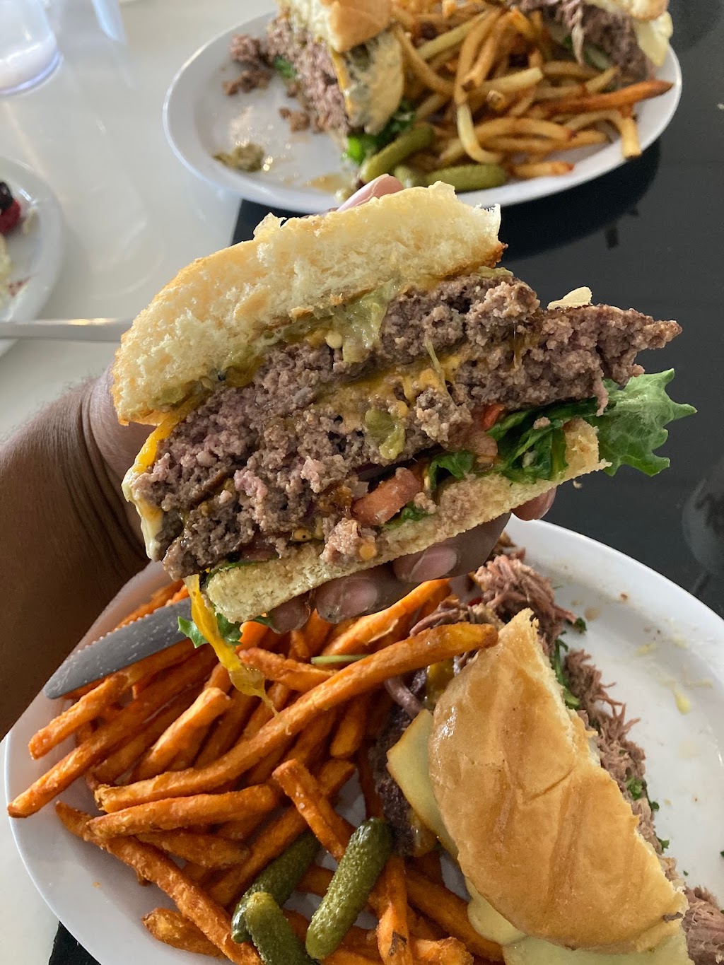 Crunchy sweet potato fries! The burgers are so juicy and delicious 🤤🤩