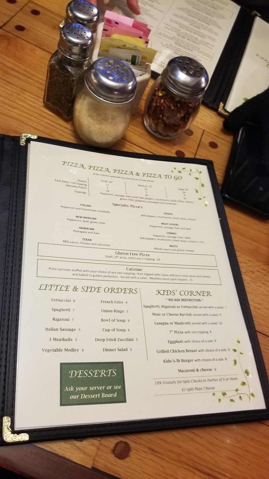 Cozy atmosphere. The food is was excellent, and so was the service. This was my favorite meal in Red River-and we ate a lot of places. I got the manicotti with Alfredo sauce, I would definitely recommend!