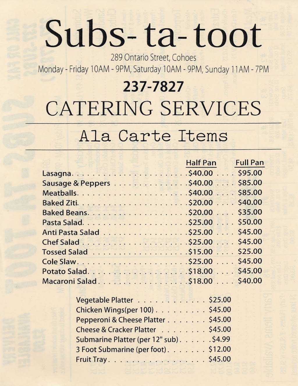 Most importantly the food was delicious and a superior value. I got a chicken parmesan sub and friends got the torpedoes. We were all very pleased with our orders. My wife particularly enjoyed the potato salad.